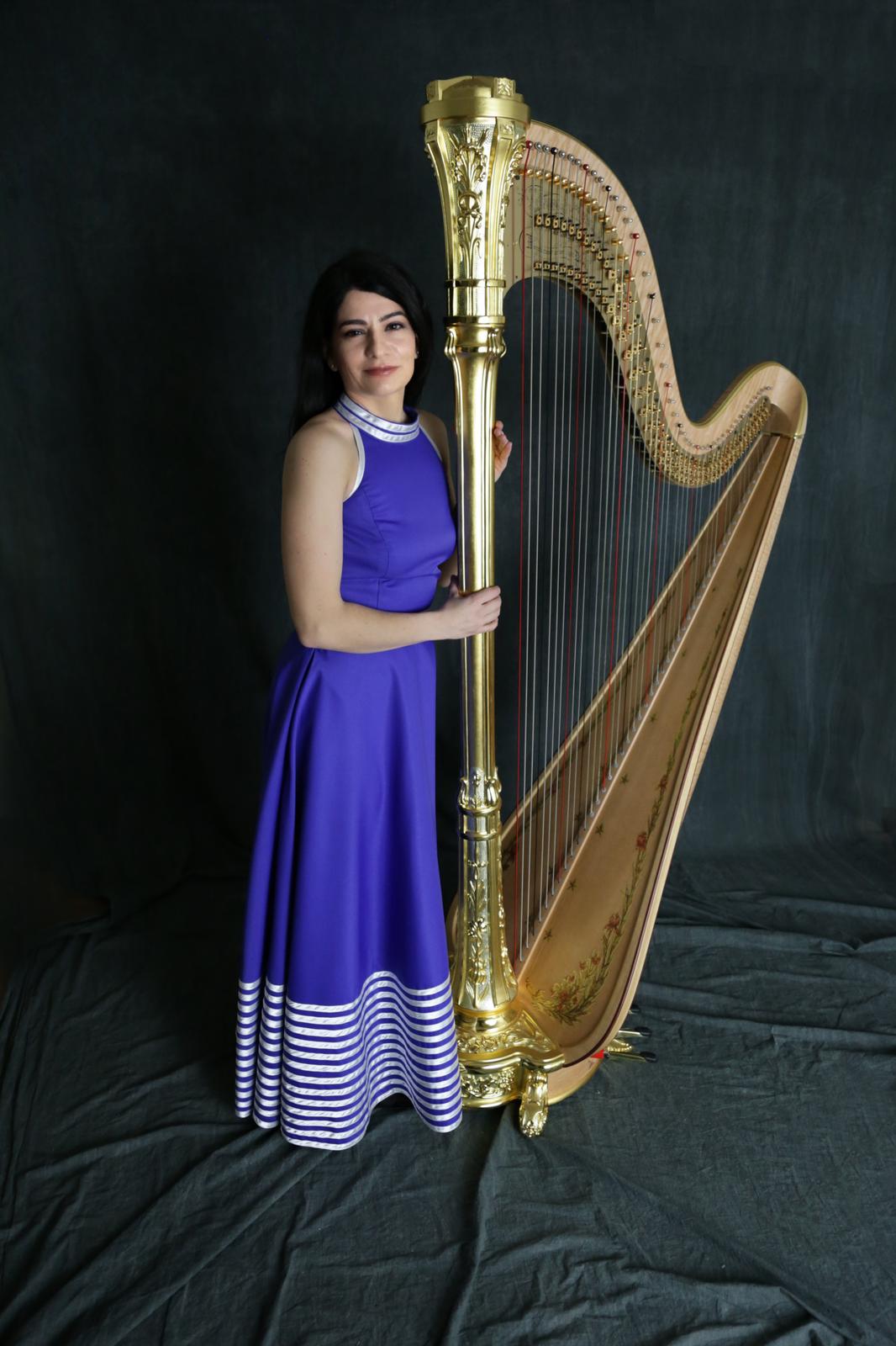 La Harpiste Megan SESMA de l'Université du Connecticut aux Etats-Unis habillée par AHMESEPT